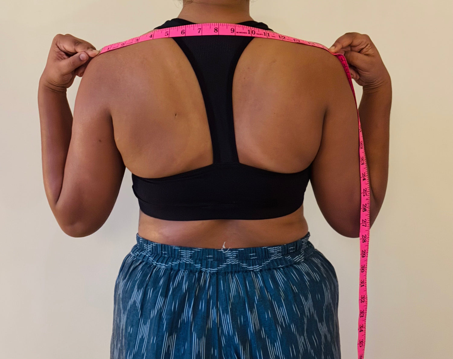 It’s easier to have someone else take your measurements. But you can do this yourself in front of a mirror, in case you can’t find someone to help.